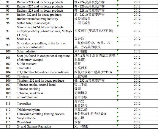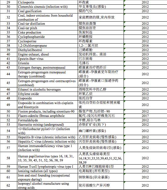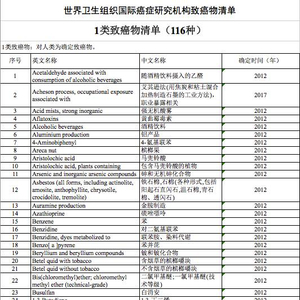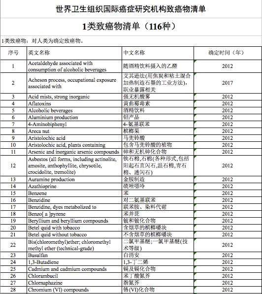 世界卫生组织国际癌症研究机构一类致癌物清单