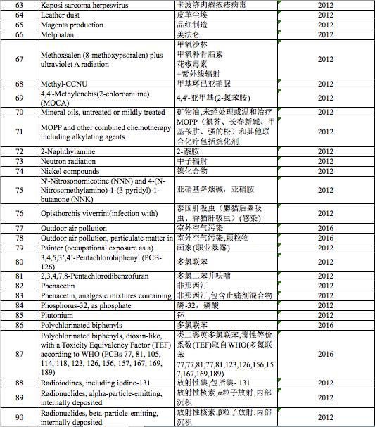 世界卫生组织国际癌症研究机构二、三、四类致癌物清单