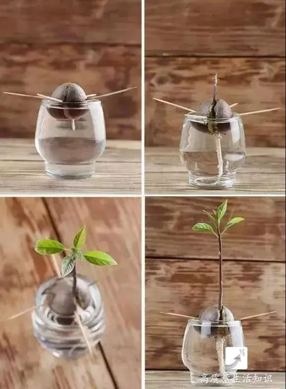 家裡买了牛油果,吃完的果核去种盆栽,配上玻璃花瓶,绝对颜值满分。
