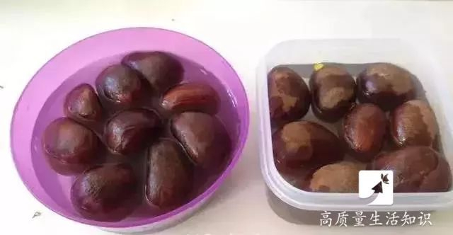 1、挑选几个饱满完整没有发霉的板栗,尖头朝下,放入清水中浸泡。水位没过板栗一半就可以,水多了可能会腐烂,每天换一次水。