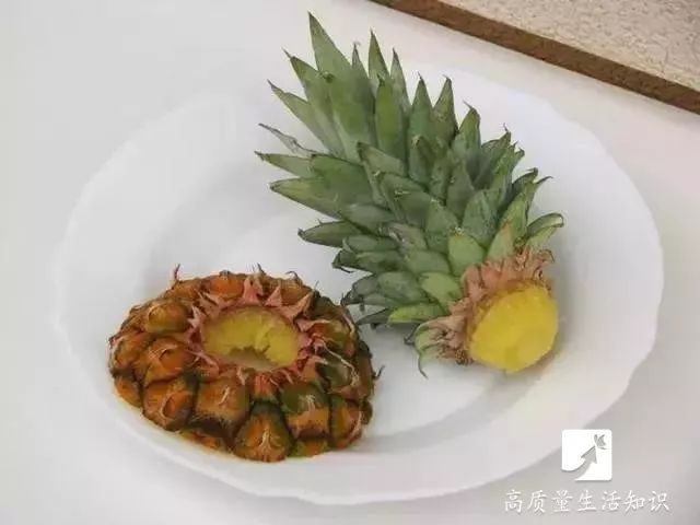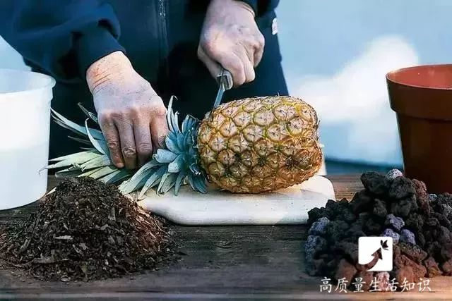 1、买回家的菠萝,把顶端带叶的切下来,吃完还能继续种多划算~