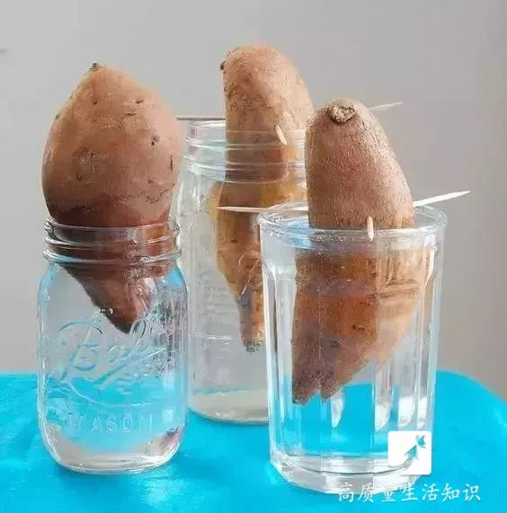 1、找一个装水的瓶子,红薯尖端朝下,一半或者三分之一浸泡在水中。利用牙签固定好红薯的浸泡位置。