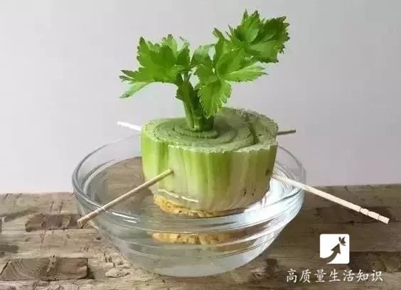 1、把芹菜根切下根部的一小段,放入玻璃瓶中,倒入清水没过根部3厘米左右的高度即可。