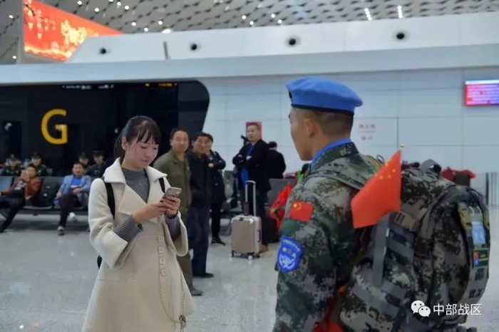 回到家,已是凌晨一点。手机上,罗钊所在第83集团军某合成旅赴南苏丹维和的新闻迅速传播。刘爽没想到,自己为罗钊送行的场景居然被记者抓拍了下来。她兴奋地把新闻链接分享到自己的朋友圈,并写下一句话:“去维和的有我男朋友,忒骄傲!”