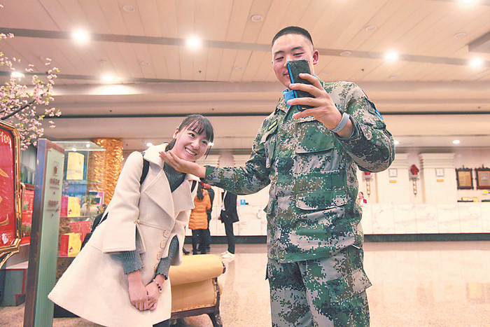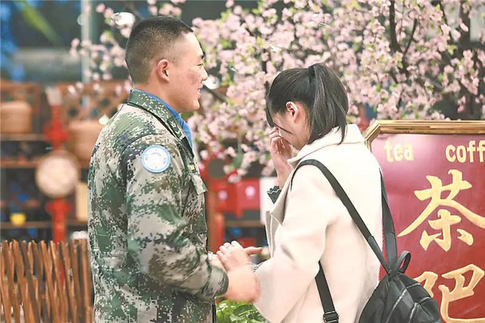 军恋,分离总是多于相聚。因此,他们特别珍惜难能可贵的团聚时光。刘爽说,每次罗钊休假,她都是在极尽“奢华”的享受中度过。只要罗钊在她身边,她可以什么都不干,就那样直勾勾地盯着男友刚毅中透着温柔的脸庞,心里祈求着回到“车,马,邮件都慢”的日子。“估计那时的我,都要流口水了吧?”脑补着那幅画面,刘爽捂着嘴笑了。