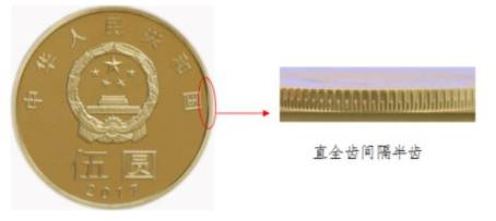 一、直全齿间隔半齿:硬币边缘分布有交替排列的全齿与半齿。
