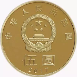 面额为5元,直径为30毫米,材质为黄铜合金,发行数量为5000万枚。