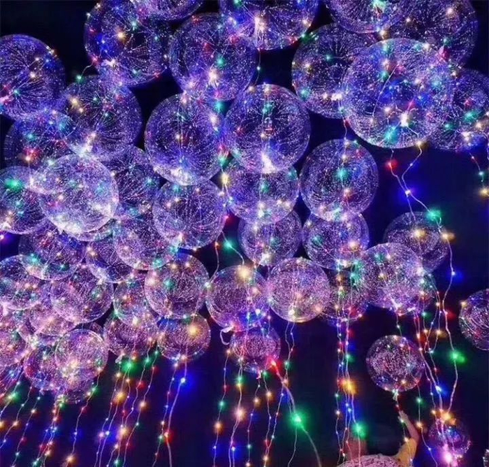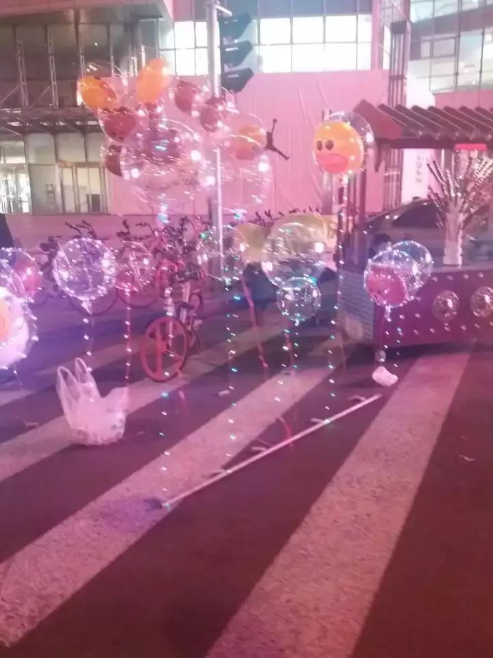 浙江杭州富阳街头摆放的发光气球卖25元一个。