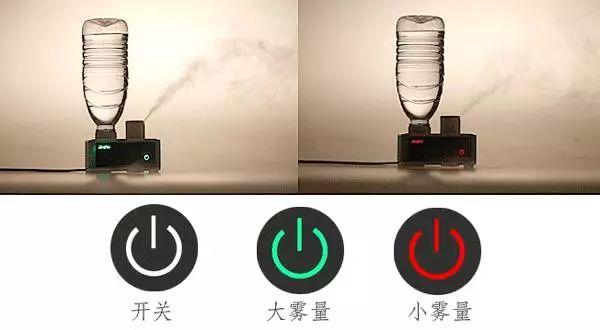 贴片式高亮度LED灯,可随触控调节雾量大小而改变颜色,以便随时用来进行调节,与此同时除了改变颜色,如遇记其内部进水等情况,则LED灯还会通过频闪的方式进行报警。