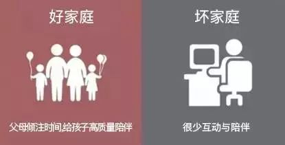 坏家庭:很少互动与陪伴。坏的家庭常常牺牲亲子时间换自己的自由时间,家庭成员之间除了吃饭,几乎处在零交流状态,尤其是爸爸们,以各种冠冕堂皇的理由缺席孩子的童年成长。