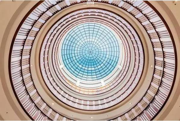 中庭的圆顶天窗放入阳光,让室内充满阅读的能量;书架充满现代感,让找书也变成一种乐趣;来这里读书就对了,精彩根本读不完。