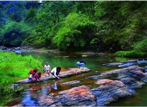十里河谷中,一年四季鲜花盛开,重山涌翠欲滴,层林色调丰富,藤萝倒挂如瀑,繁花如锦似屏。曲曲折折的林荫小道,惊险刺激的独木桥,清澈流淌的溪流,原生林中清新、湿润的空气,都使人精神亢奋。