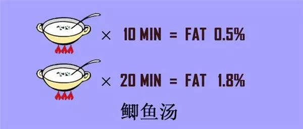 鲫鱼汤炖至10分钟时脂肪含量0.5%