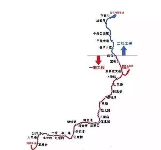 高滩岩、天梨路、沙坪坝、小龙坎、土湾、红岩村、富华路、华村、李家坪、蚂蝗梁、观音桥、鲤鱼池、刘家台、江北城、五里店、溉澜溪、头塘、保税港、何家梁、石盘河、上湾路、服装城大道、宝桐路、回兴