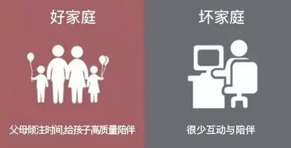 坏家庭:很少互动与陪伴。坏的家庭常常牺牲亲子时间换自己的自由时间,家庭成员之间除了吃饭,几乎处在零交流状态,尤其是爸爸们,以各种冠冕堂皇的理由缺席孩子的童年成长。