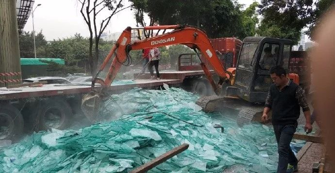 11月5日凌晨6时许,一辆拉着满满一车玻璃板的货车沿着南宁市秀厢大道由东往西方向行驶,途径恒安新城小区前的铁路桥时,与限高为4.2米的铁路桥底发生剐蹭,事故导致货车上拉载的玻璃板掉落地上,碎了一地。