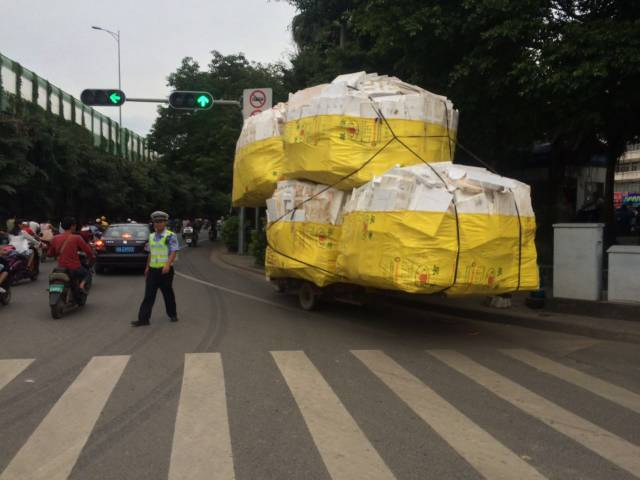 据三轮车司机说,这些泡沫块是他刚刚收购来的,正打算运往废品收购站。由于运送距离较远,为了节省运费就打算一次性拉完,没想到被交警抓个正着。