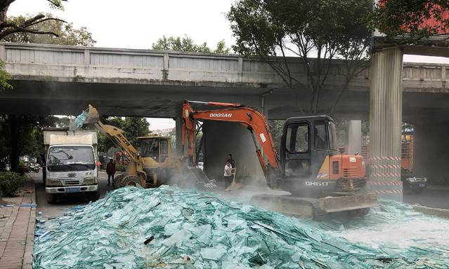 在多方联动的共同努力下,事发七个小时后,所有散落的玻璃得到全部清理,该铁路桥下道路恢复畅通。
