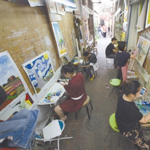 上世纪80年代,大芬还只是布吉镇一个普通的自然村,收入水平很低。随着改革开放的步伐,这里借助廉价的民房和劳动力进行油画临摹、复制、收购与销售,将油画这种特殊的文化产业带到大芬村,并逐渐发展壮大。