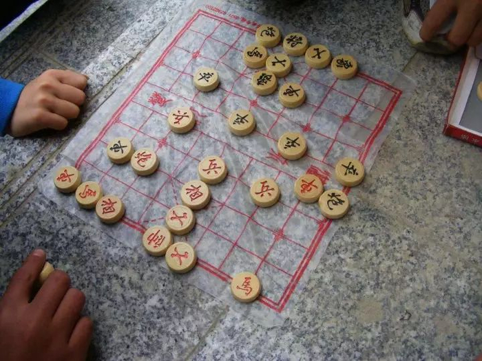 当然也有正儿八经的象棋,“象飞四方营四角,马行一步一尖冲。 炮须隔子打一子,车行直路任西东。”这口诀当时不少人会背呢!