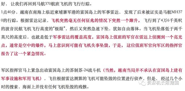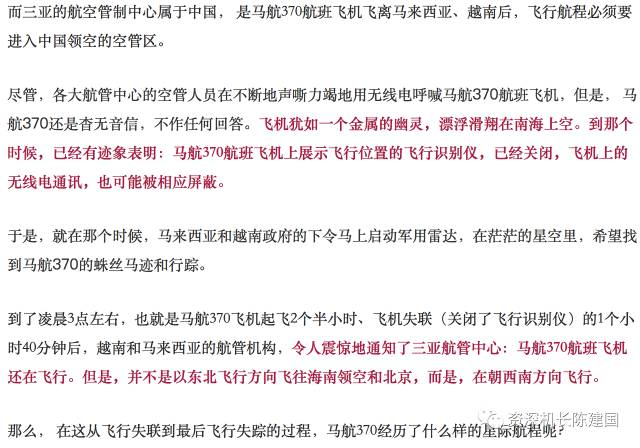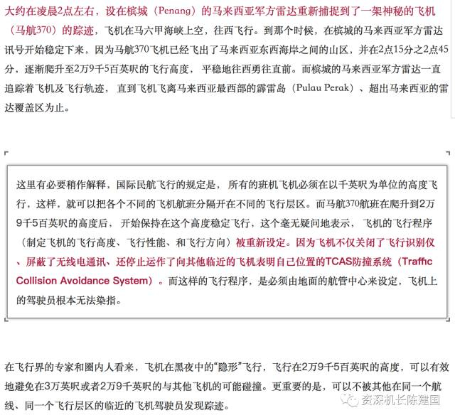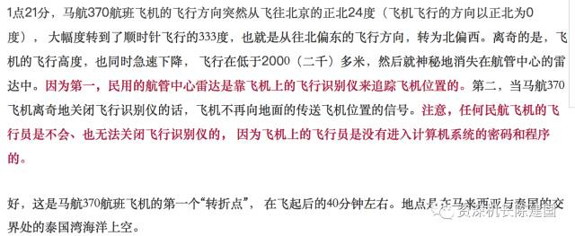 纵观该文,作者利用外界对民航和航空知识的不足,利用网上搜罗的各种谣言,利用一般民众不熟悉的所谓航空术语,以及被害妄想的情绪,完全颠三倒四地把MH370描绘成一个阴谋。