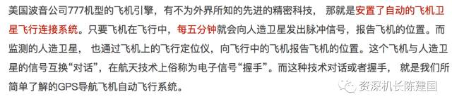 这个系统有,但不是以报告位置信息为目的,是以监控发动机运行情况为目的的。而所谓的应答机(文中的“飞行定位仪”),也不是与人造卫星对话和握手,这个不是航天技术的握手,这个叫“PING”,是无线通讯领域的技术。而这个和“GPS导航飞机自动飞行系统”风马牛而不相及。