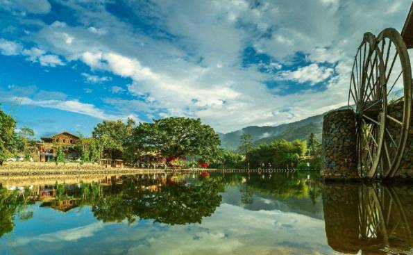 云水谣古镇位于福建省南靖县土楼风景旅游区,介于书洋、梅林两镇之间,有璞山、官洋、坎下三个村,是闽南闻名遐迩的一个秀美山村,那里的幽长古道、千年老榕、青山碧水、神奇土楼,宛如一幅浓墨重彩的山水画。村中有条全部用鹅卵石铺成的古道——“云水谣古栈道”。 云水谣古镇”原名长教,那里山川秀美、人文丰富。