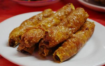 漳州特有的民间传统小吃,因为食用时以手抓食而得名。由面料、配料、佐料三部分合成。吃时将油炸豆腐干放面份上,均匀地抖以各种酱料,然后卷成筒状,吃起来香甜酸辣、溢香生津。