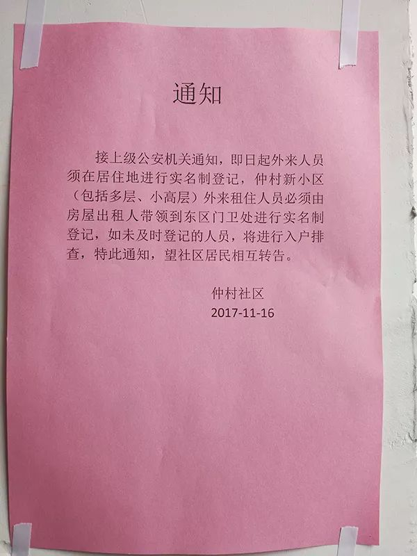 案发第三天,当地印发通知,对外来租住人员进行实名登记。