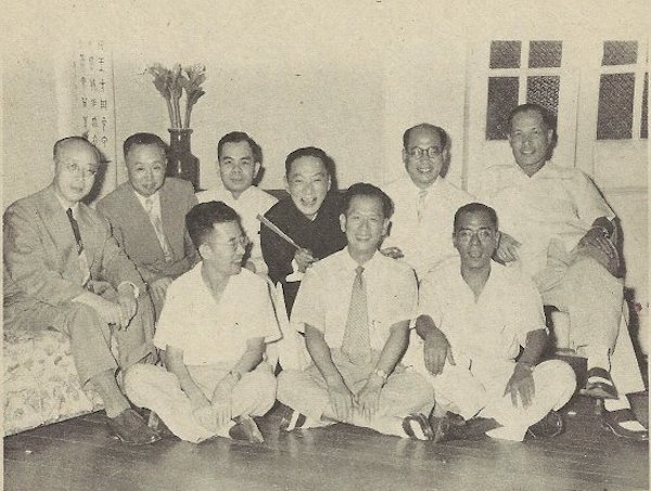 1951年柳存仁(此时“柳雨生”已弃用)与叶灵凤、俞振飞、李伯言、陈梦茵等人在香港的合影。前排左一席地而坐者即柳雨生。