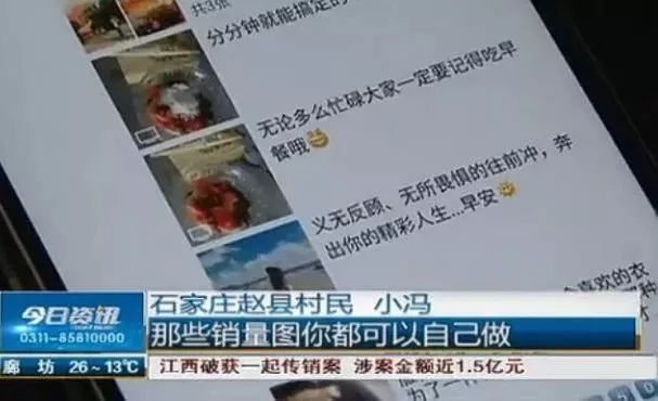 最近,石家庄村民小冯说,她有位同学是一名微商,经常在朋友圈里晒销量图、反馈图。小冯认为她的产品销量一定很好,就心动了,寻思着给孩子挣点零花钱。
