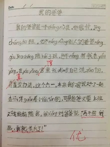 他在作文《我的爸爸》中