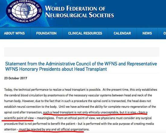 而且,今年10月,世界神经外科联合会就发表声明:头颅移植不可接受、毫无意义。