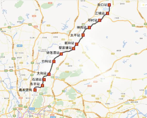 西起花都飞鹅岭站,东至白云高增站