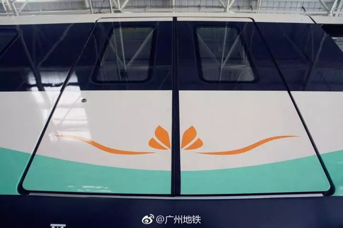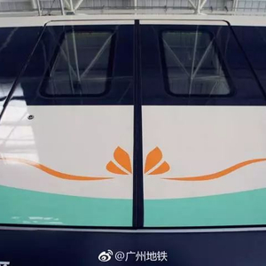 9号线列车外观非常漂亮,车身采用动感的“波纹”腰线,象征珠江的水波纹,而车身上的莲花,则暗合花都之名,再配上车头勾勒出的“微笑”图案,整个列车体现出一种和谐、广阔、沉稳的气质。