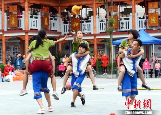 11月18日—20日,中国唯一的毛南族自治县——广西河池市环江毛南族自治县举行自治县成立30周年庆祝活动。19日,少数民族传统体育展演在环江县第一中学举行,马革球、打陀螺、背篓球、牛角棋、抢花帽、滚铁环、竹竿舞、四同(同填、同顶、同拼、同背)……展演的民族传统体育项目众多,精彩纷呈,趣味横生。