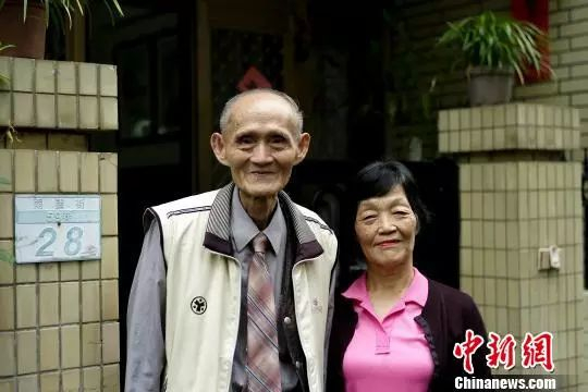 图为高秉涵与妻子石慧丽在位于台北住家门前合影,二人自1967年结婚,至今刚好50年。 杨程晨 摄