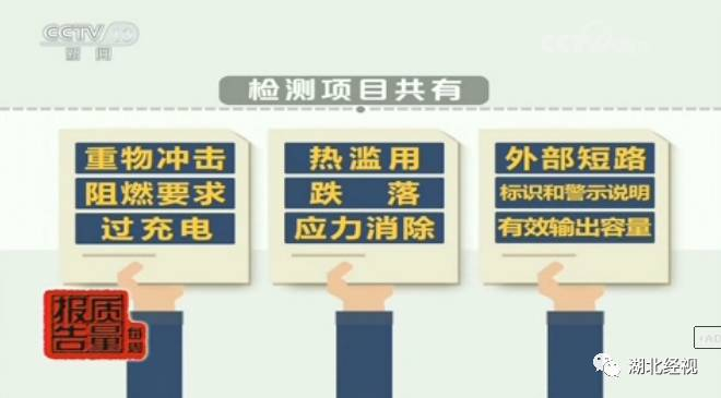 广东产品质量监督检验研究院的工程师表示:按照国家标准GB31241-2014便携式电子产品用锂离子电池和电池组安全要求,充电宝产品的内部电池在遭受9.1公斤的重物从610毫米处落下撞击电池表面后,内部电池不起火、不爆炸,才是一个质量合格的产品。