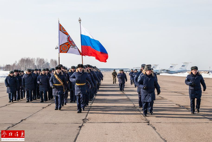 据俄罗斯国防部网站报道,接收新型预警机的机组人员此前已经完成了在地面和空中的电子设备使用训练,已经具备执行预警巡逻任务的作战能力。图为在飞机交付仪式上接受阅兵的空天军机组人员。