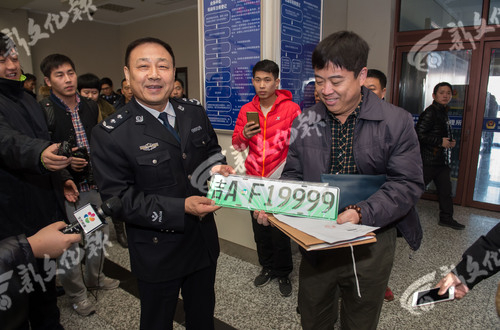11月20日上午,随着吉林省公安厅交警总队总队长高宏伟把吉AF11666号车牌递交到车主手中,标志着长春市发出了首副新能源汽车专用号牌。目前,长春共有7个地点可办理新能源汽车专用号牌业务。新号牌以绿色为主色调,号码由5位升为6位,工本费仍执行普通汽车号牌收费标准,每副号牌100元。