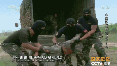 逃生训练:用绳子把队员捆绑后扔到水里,锻炼队员水中求生的本领。