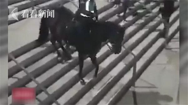 视频|马儿不会下楼梯走出“魔鬼的步伐” 倒霉骑警被甩下台阶