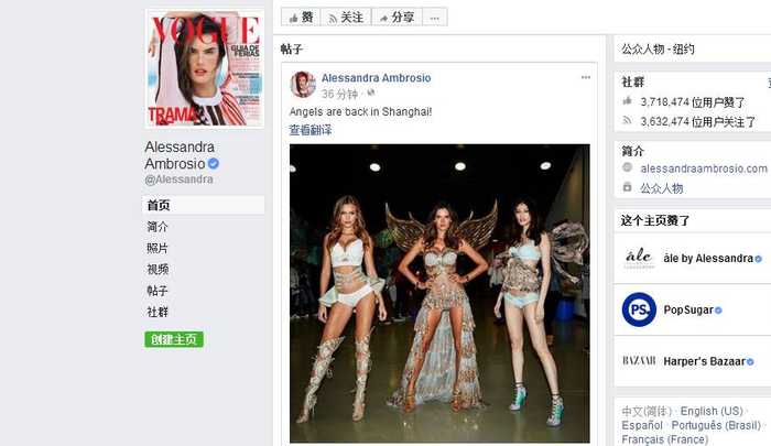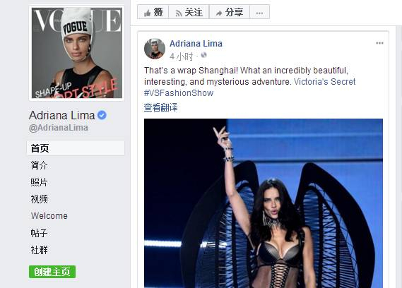 今年最后一年走维密的当家花旦Alessandra Ambrosio在Facebook上感叹到,“天使回归上海!”