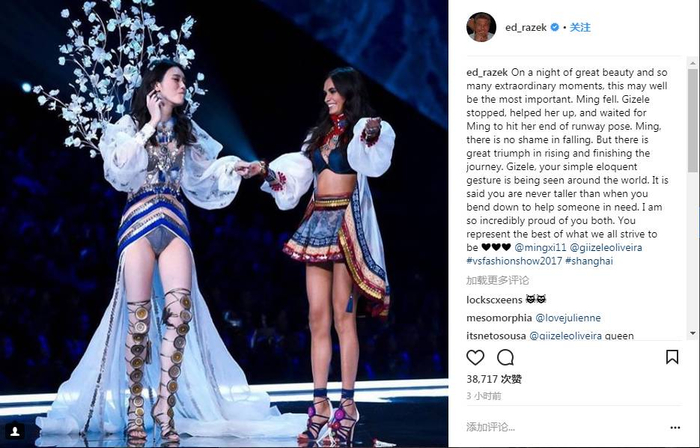 几个小时前,维密首席运营官Ed Razek在instagram上发文,称