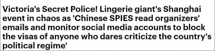 英国《每日邮报》用“维多利亚的秘密警察!”的耸动标题来带节奏,称中国政府“监视”维密在中国的团队、使其在上海的活动“陷入混乱”。