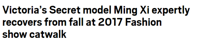外媒当然也没有放过这一“小插曲”。不过吸引它们的报道点并不是摔倒,而是奚梦瑶在摔倒之后表现出的优雅、从容和专业。(奚梦瑶英文名“Ming Xi”。奚梦瑶经纪公司的母公司在巴黎,所以在巴黎出道。法国人不会念“Mengyao”,他们觉得“Meng”和“Ming”差不多,所以就叫她“Ming",再加上姓就是“Ming Xi”)