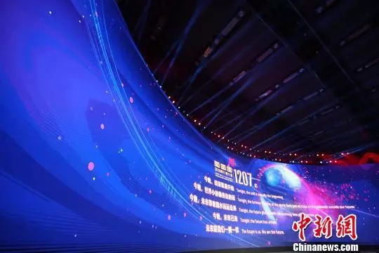 资料图。图为天猫双11全球狂欢节最终成交1207亿定格画面。