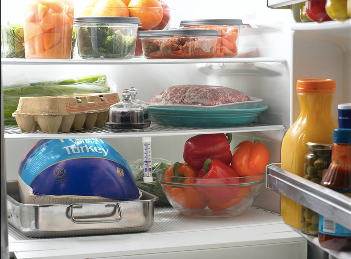 1、将冰箱的温控器旋钮旋至最冷档,让冰箱运行二十分钟左右,使冰箱内食品具有较低温度,把箱内食品取出,然后拔去电源插头。