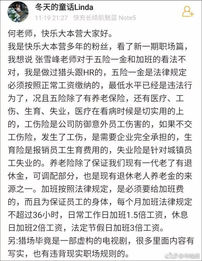 @大嘴发言人:张老师言多必失了,虽然平时三观很正,但这个企业五险一金的事情,说得不对。企业跟员工合作的基础是法律,是基于劳动法的劳动合同,如果企业连基本的五险一金都不想缴纳,还不想应聘者问几句,那还提什么让员工奉献?如果企业不反感五险一金,那张老师反感啥呢?
