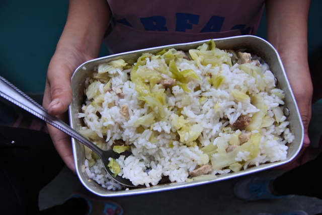 ↑弄腾小学的营养餐。新华社记者农冠斌 摄↑学生在弄腾小学食堂吃午饭。新华社记者农冠斌 摄
